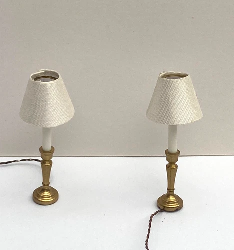 PAIR BRASS CANDLE STICK ELECTRIC LAMPS DOLLS HOUSE LIGHTING
