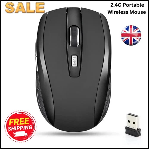 BLACK WIRELESS CORDLESS 2.4ghZ MOUSE USB DONGLE OPTICAL SCROLL FOR PC LAPTOP MAC