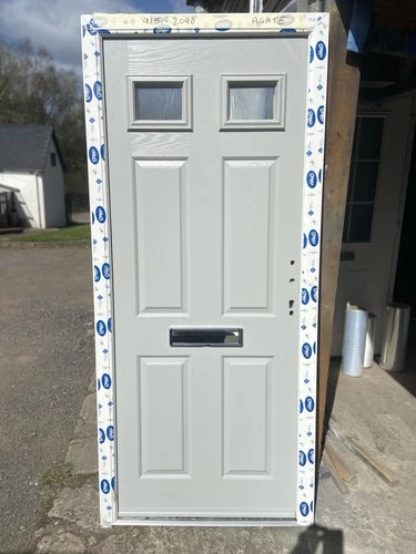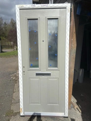 NEW 910-2090 STONE GREY ( RAL 7030 ) FRONT DOOR IN A WHITE UPVC FRAME