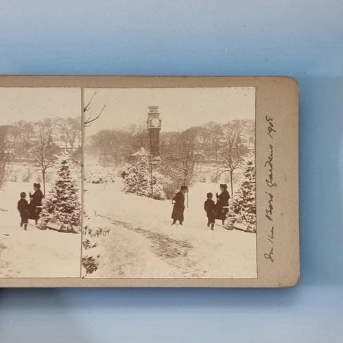 Dorchester Stereoview C1908 Real Photo Dorset Edwardian Snow Clocktower Park