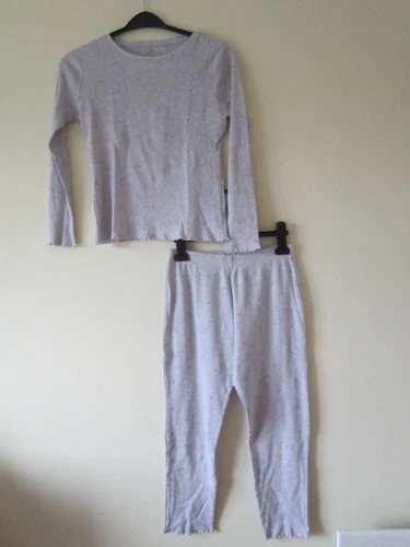 AGE 10 11 YEARS PYJAMAS SET PJS GIRLS KIDS F&F TESCO GREY PINK DOT SPOT