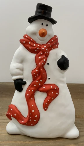 Dept 56 Snowman Shelf Decor Red Polka Dot Scarf Top Hat 8” Tall Black Gloves