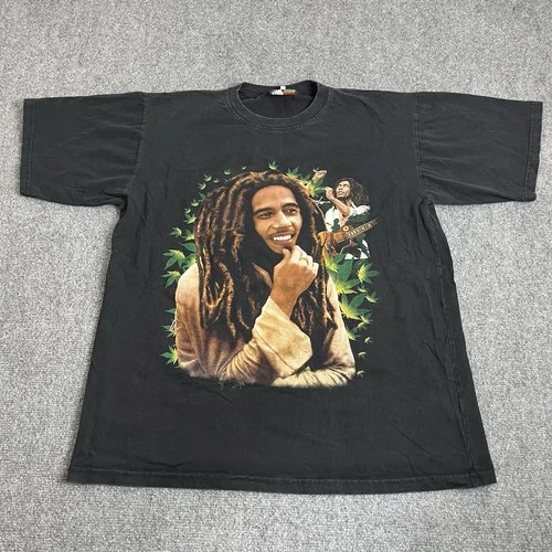 VTG Bob Marley Rasta Reggae T-shirt Men’s Size XL Black Zion Double Sided Y2K