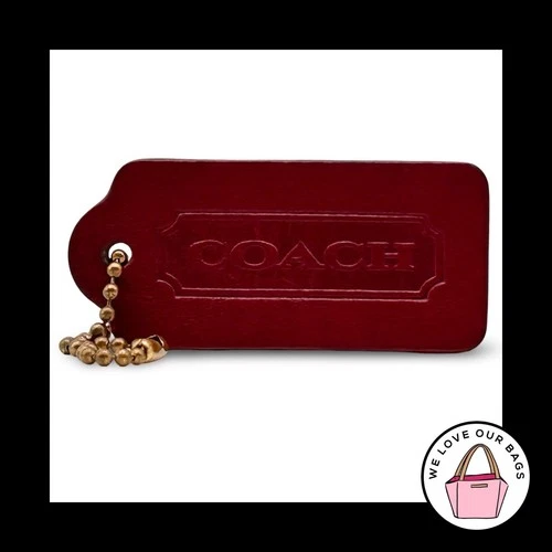 2.25" COACH VINTAGE DOUBLE SIDED Red Leather Fob Bag Charm Keychain Hang Tag