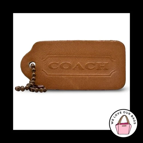 COACH VINTAGE DOUBLE SIDED Camel Tan Leather Key Fob Bag Charm Keychain Hang Tag