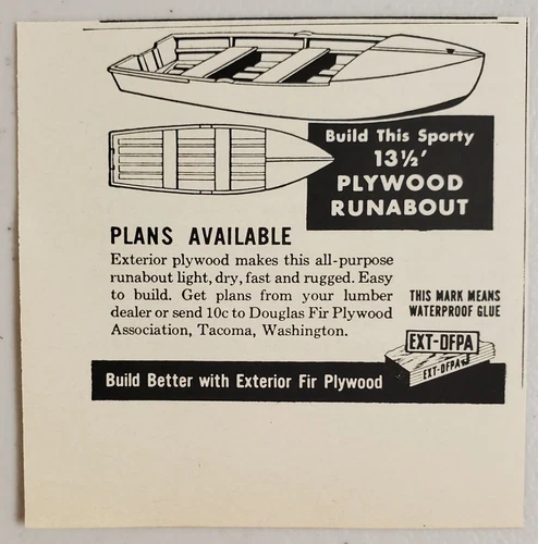 1954 Print Ad 13' Plywood Runabout Boat Kits Douglas Fir Tacoma,Washington