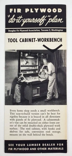 1950s DIY Douglas Fir Plywood Tool Cabinet Work Bench Plan Vintage Brochure
