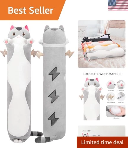 Mewaii 28in Gray Cat Plush Pillow - Perfect Gift for Birthdays and Holidays