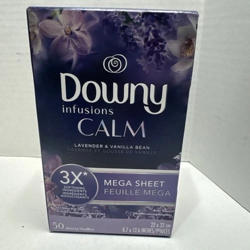 Downy Infusions Calm Mega Dryer Sheets, Lavender and Vanilla Bean Scent, 50 Ct