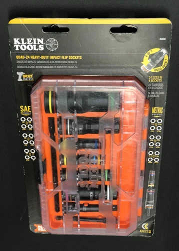 Klein 656QS KNECT Quad-24 Heavy-Duty Impact Flip Sockets, SAE and Metric, 9pcs