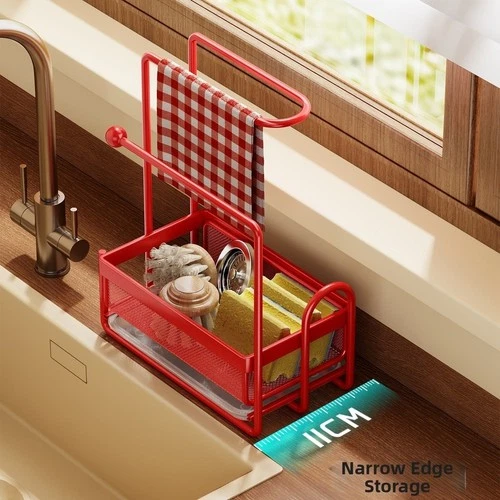 Countertop Dishcloth Organizer with Drain Board Fits Narrow Edges Near Sink