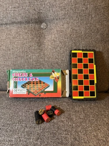 Vintage Mini Magnetic Chess & Checkers Set Travel Game Pocket Size 1980s 1990s