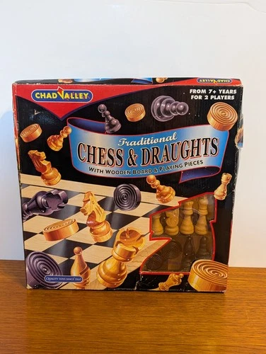 Chad Valley Traditional Chess & Draughts Board Game With Wooden Board & Pieces.