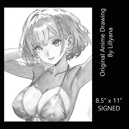 ORIGINAL Sexy Anime | Ecchi Waifu | Pinup Girl | Comic Art Sketch Drawing Signed
