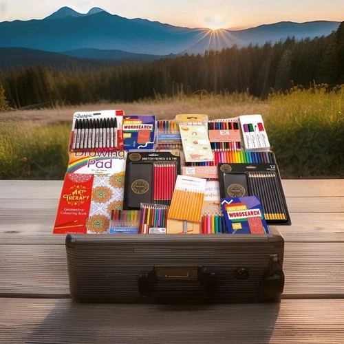Colouring & Art Set Pencils Pens felt tip Sketch Kit Drawing Pad Kids Craft UK