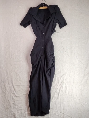 SHEIN Black Ruched Form Fitting Back Slit Maxi Dress Womens Size XS Button Up