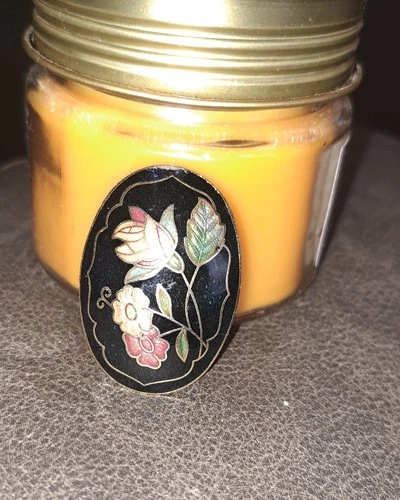 Gorgeous Vintage Cloisonne Floral Scarf Slide Holder Tie Dress Clip Enamel
