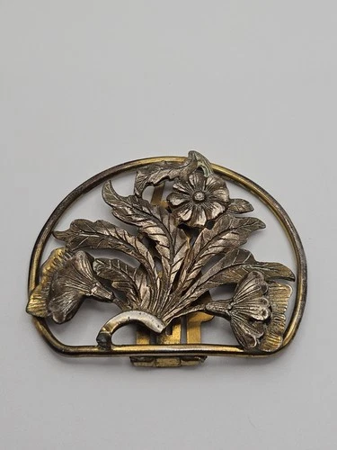Vintage Dress Fur Scarf Clip Art Nouveau Brass Tone Floral