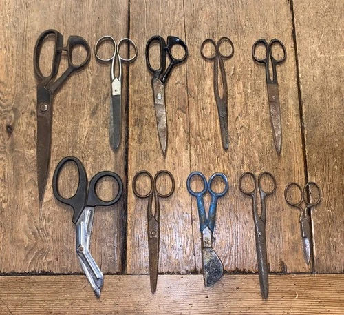 JOB LOT OF 10 PAIRS OF SCISSORS TAILORS DRESSMAKERS SCISSORS SHEARS OLD TOOLS