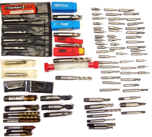 Selection of 80+mainly small HSS End Mills/Slot Drills, 20 + UNUSED, inc Tricut