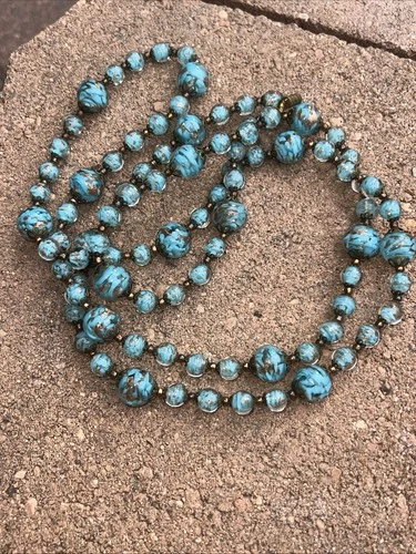 Venetian Murano Copper Flecks Adventurine Glass Bead Vintage Necklace Italy 48"