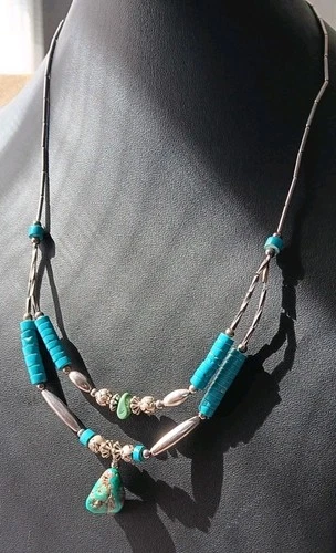 Vintage Native American Style Two Tiered beaded Necklace, 18" Twist Barrel Clasp