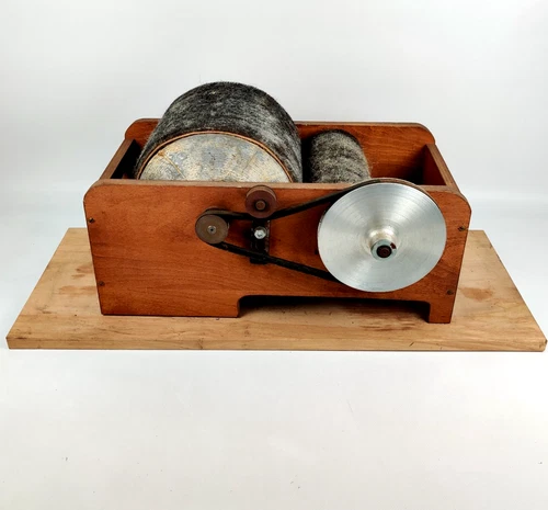 Vintage Carding Machine Drum Carder 50s Wood Metal Manual Spinning Mill