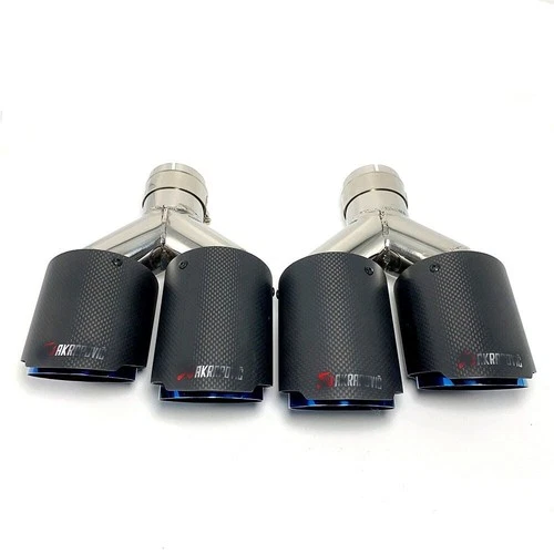 2PCS Carbon Fiber Blue Universal Exhaust Tip Dual Pipe OD:76/89/101mm