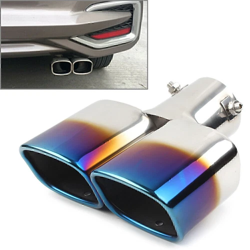 New Stainless Steel Rear Exhaust Dual Pipe Tail Muffler Tip Square Accessories