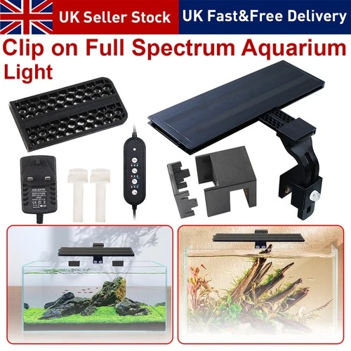 Clip on Full Spectrum Aquarium Light 18W Fish Tank LED Lamp Day-Night Dual Time