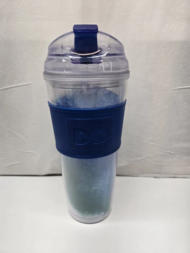 Dunkin Donuts 2018 Clear Acrylic With Blue Clouds & Blue Rubber Grip~24oz~
