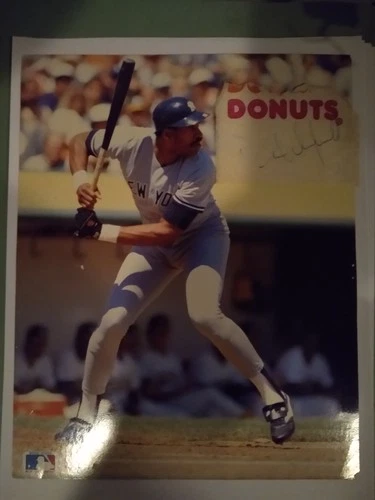 DAVE WINFIELD 8X10 PICTURE WITH DUNKIN DONUTS SIGNED NAPKIN