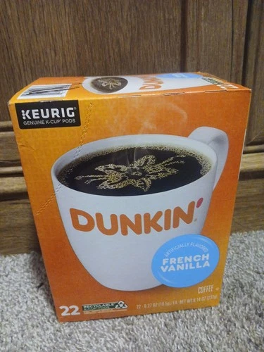 Dunkin’ French Vanilla Artificially Flavored Coffee, K Cup Pods, 22/box Exp 2025