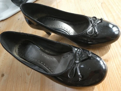 PAIR LADIES CLARKS BLACK LOW HEEL SHOES SIZE 6 # 435