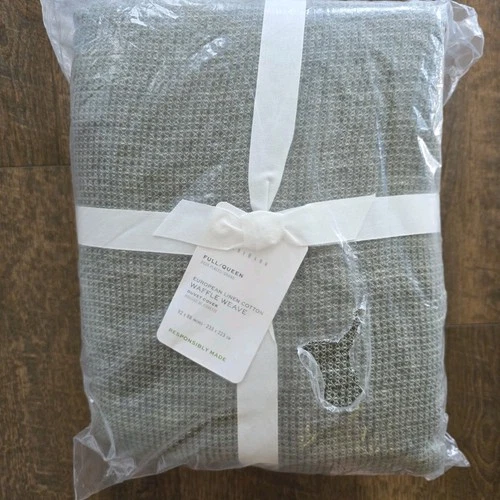 Pottery Barn European Flax Linen Waffle Duvet Cover Full Queen Loden