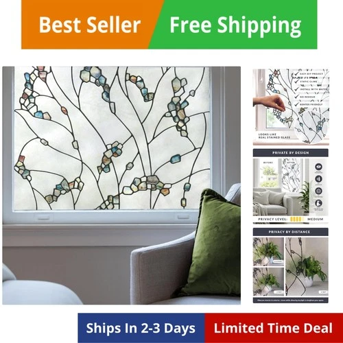 1 Roll Stained Glass Window Film Decorative Privacy Tint Cling Colored