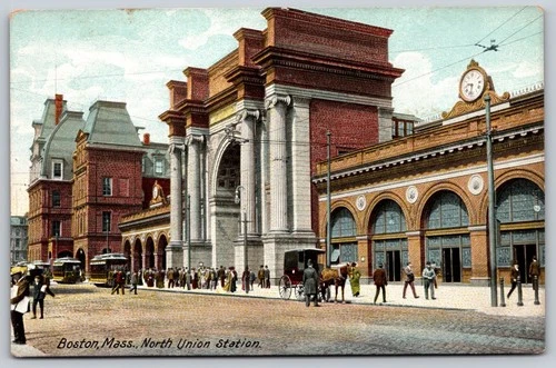 Boston North Union Station H.C. Leighton Postcard Early 1900s Streetcars AA823
