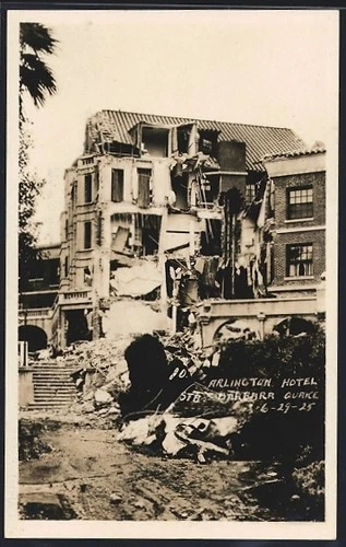 Santa Barbara, CA, Earthquake 1925, Arlington Hotel, Postcard