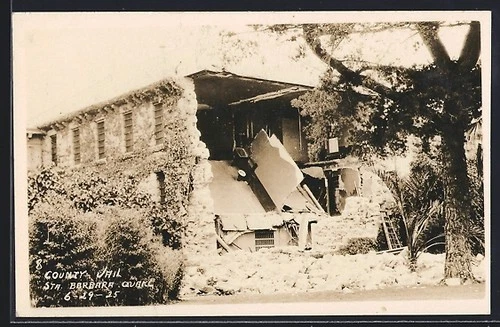Santa Barbara, CA, Earthquake 1925, County Jail, Postcard