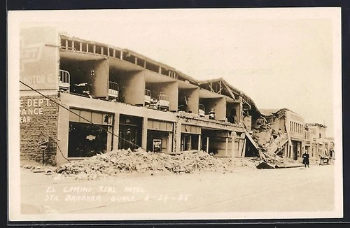Postcard Santa Barbara, CA, Earthquake 1925, El Camino Real Hotel