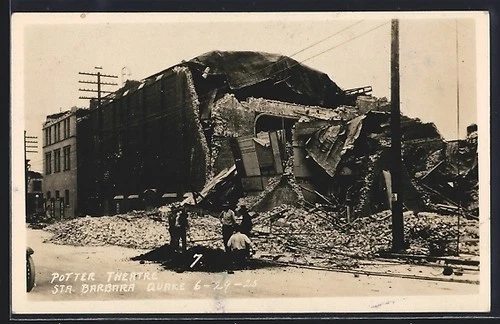 Santa Barbara, CA, Earthquake 1925, Potter Theatre, Postcard