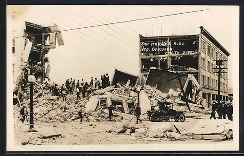 Santa Barbara, CA, Earthquake 1925, San Marcos Building, Postcard
