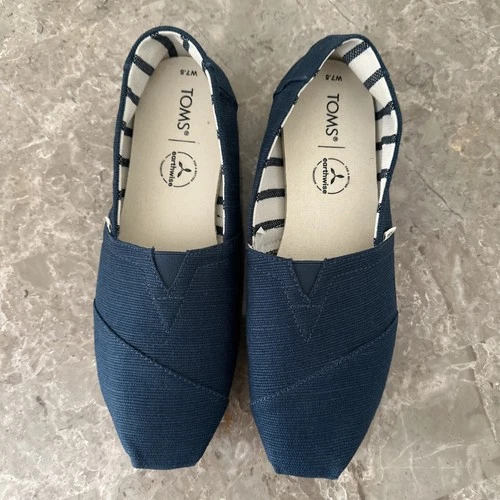 Toms Women's Earthwise Ortholite Slip Ons Size 7.5 Blue Canvas