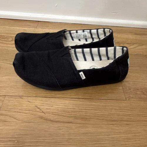 TOMS Black Slip On Flats Women’s Canvas Solid Round Toe Rubber Casual Size 8