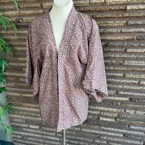 Japanese Vintage Kimono Mauve Pink Patterned Haori Jacket