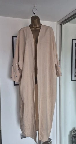 Women's Beige Heart Embroidery Open Abayas Kimono Size S