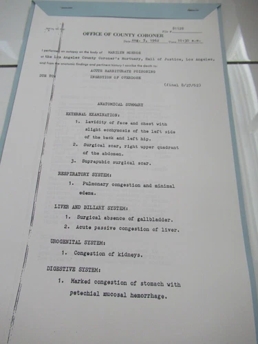 MARILYN MONROE CORONER, MED EXAM & DEATH CERT REPORT! OOAK only copy on EBAY 18p