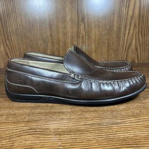 ECCO Leather Driving Loafer Mens Size US 10 CoCo Brown Classic Slip On Moc Toe