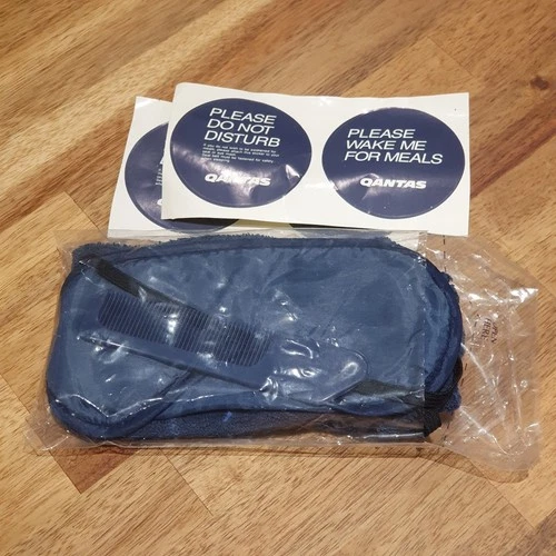 Qantas amenity kit economy class - slippers, eye shade, comb, stickers