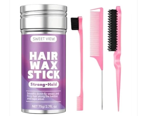 Hair Wax Stick & Pink Brush Set for Hair Edge Frizz Control Anti-Frizz Non-grea